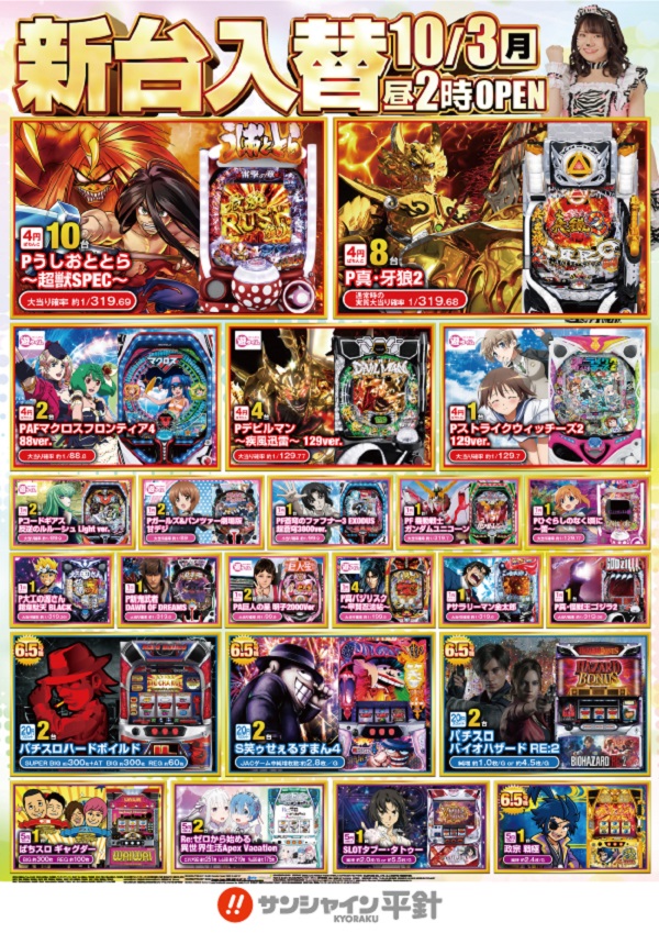 10月7日(金)サンシャインKYORAKU平針!朝9時開店!