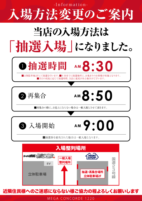 メガコンコルド1220名古屋みなと23号通り店のお知らせ一覧