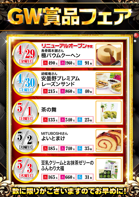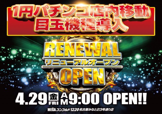 4月29日【金】リニューアルオープン!朝9時開店!!!