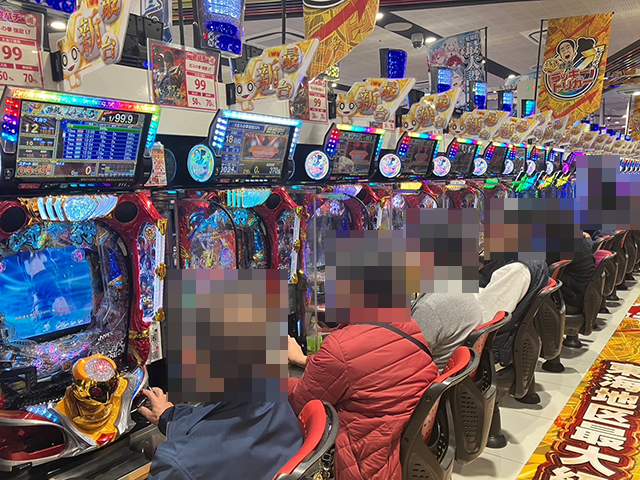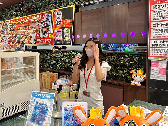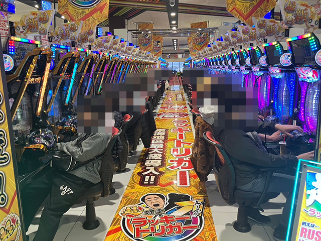 「PLT OVERLORD魔導王光臨」や「P緋弾のアリア~緋緋神降臨~ラッキートリガーVer.」、「P北斗の拳 強敵 LT」などが楽しまれており、各機種が華やかなムードに包まれていました。