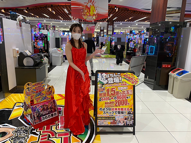 随所に華やかな光景が広がっており、さまざまな機種で遊技を楽しめるといったイメージを受けました。