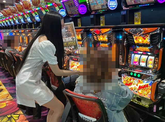 パチスロコーナーにおいても、笑顔のプレイヤーを発見!!