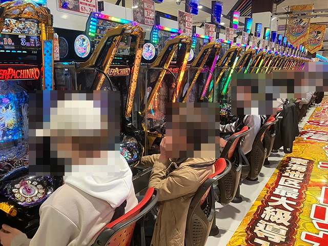 パチンコのみならず、パチスロも支持されており、ホール全体が明るい雰囲気!