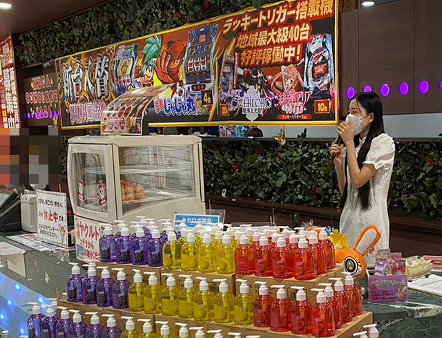 DMMぱちタウンのPRなどをおこないつつ、みなさんにキュートな笑顔をお届けしましたよヽ(・ω・)ノ=3