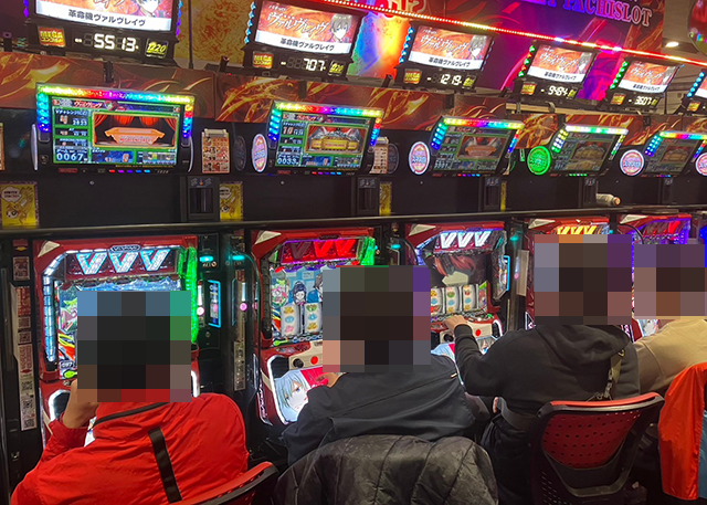 「パチスロ 革命機ヴァルヴレイヴ」や「スマスロモンキーターンV」などが満席になっていて、笑顔のプレイヤーもいっぱいです☆