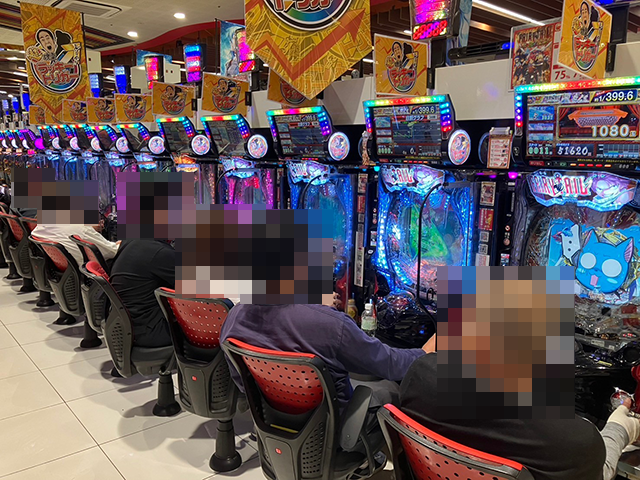 たくさんのプレイヤーが集まり、パチンコとパチスロの両方がにぎわっていた「メガコンコルド1220名古屋みなと23号通り店」。
