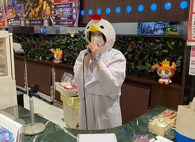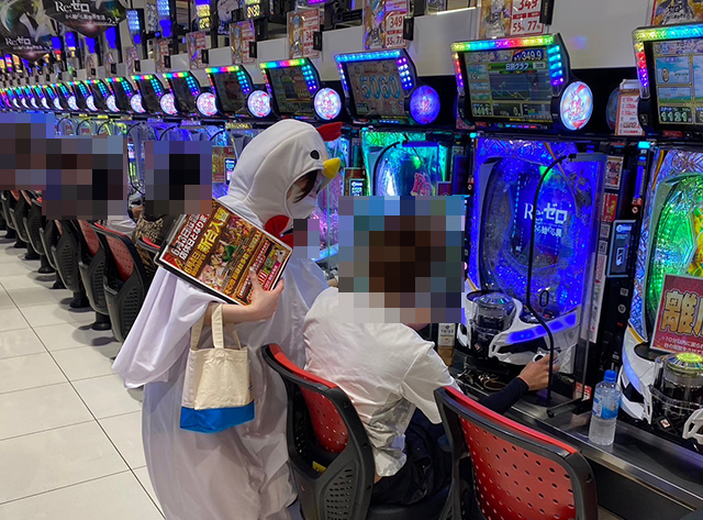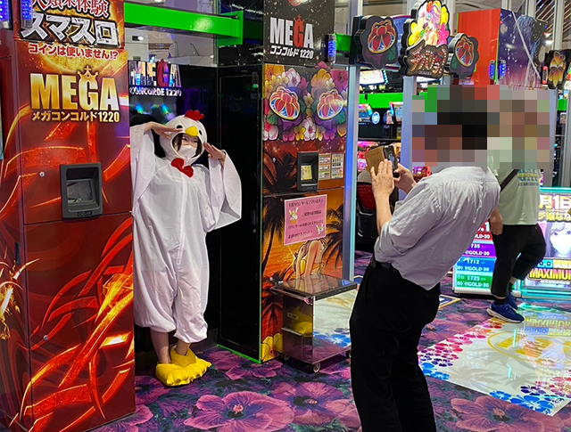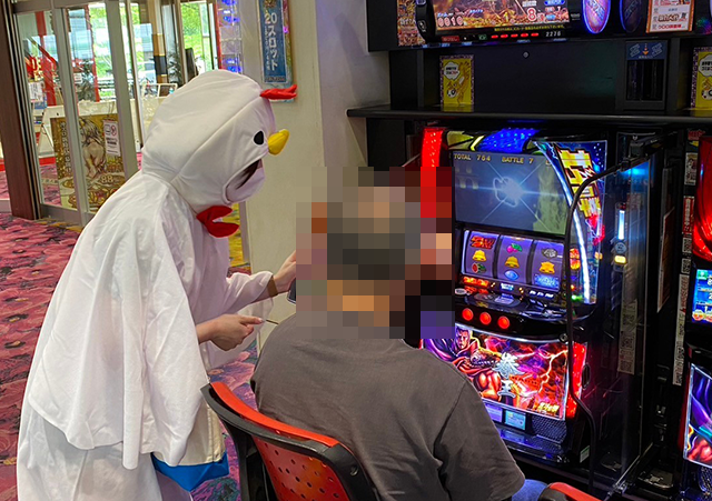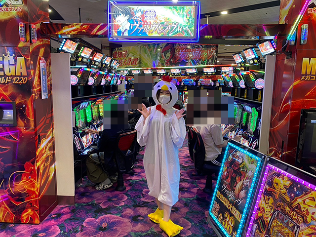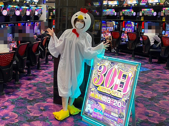 トリさんのユニークな衣装を着て、パチスロコーナーを中心に店内をまわっていきまーす(≧∀≦)/