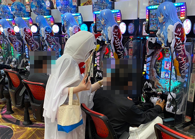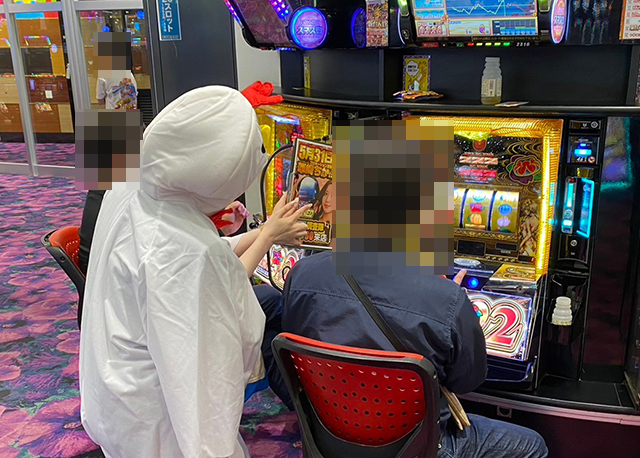 にぎやかなパチスロコーナーをまわっている未織ちゃんの姿をキャッチ★