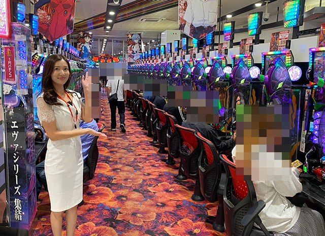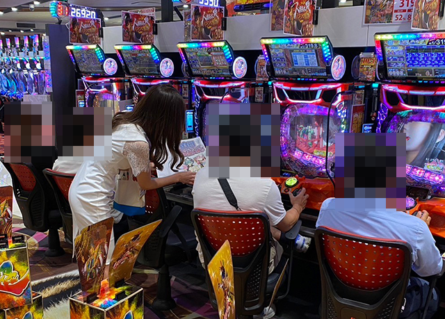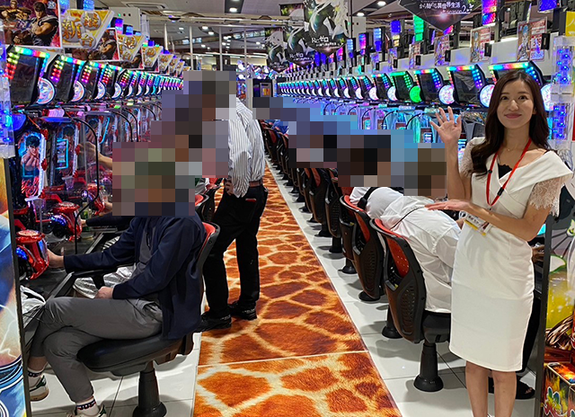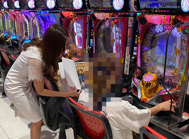 パチンコのさまざまな機種で、笑みを浮かべている姿をキャッチしました。