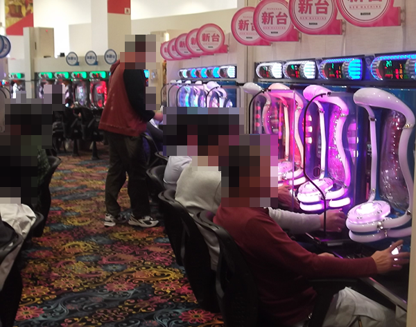 低貸し玉コーナーにも、にこやかな表情で遊技を楽しんでいる人が多数。