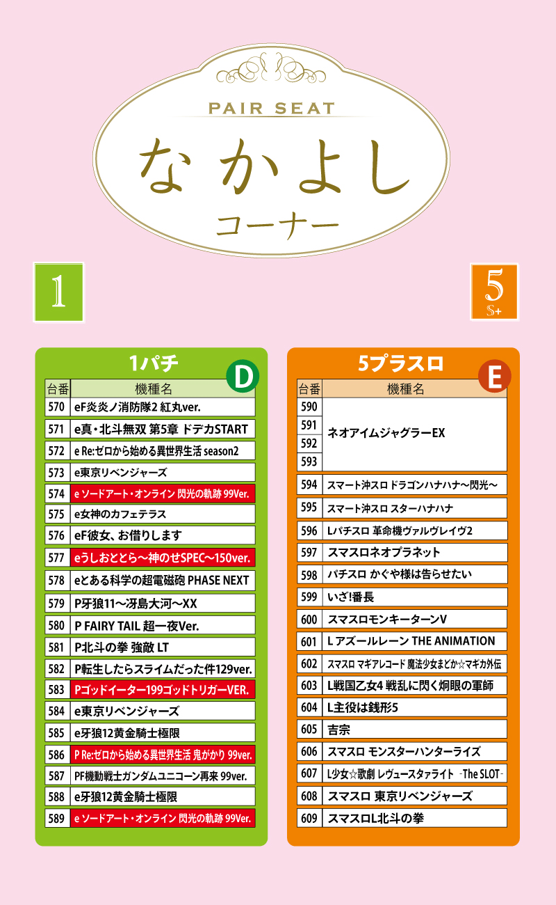 ZENT名古屋北店の機種情報