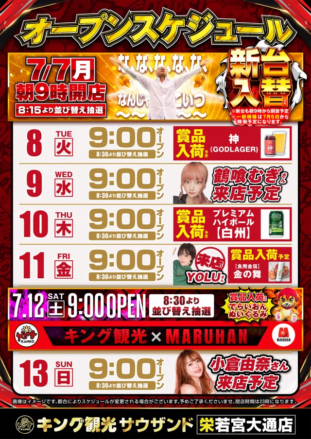7月5日(土)★賞品入荷予定★朝9時開店★