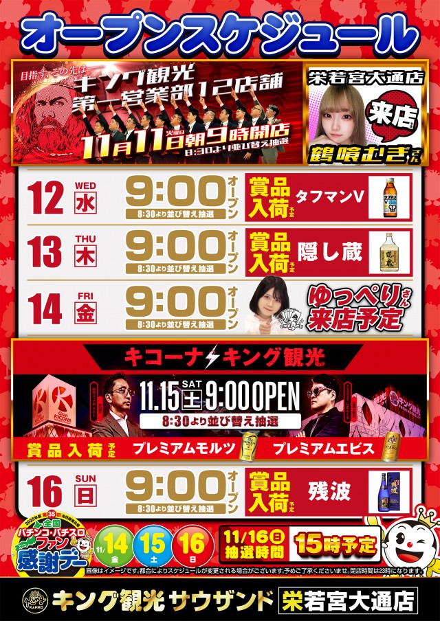 11月11日(火)★キング観光第一営業部12店舗★朝9時開店