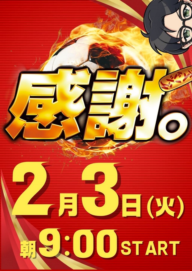 【感謝】2月13・14・15日ファン感謝デー【感謝】