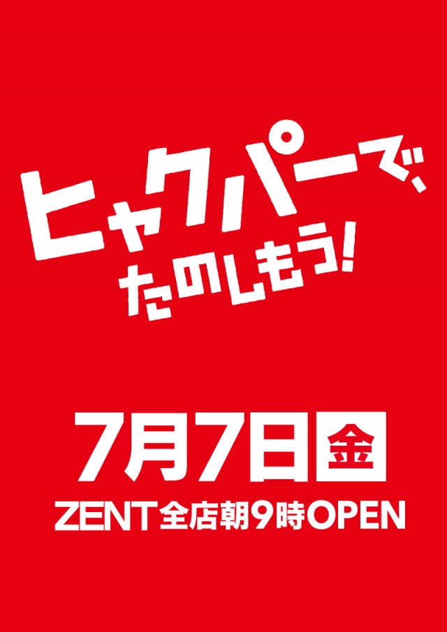 【7月7日】ZENT全店あさ9時開店