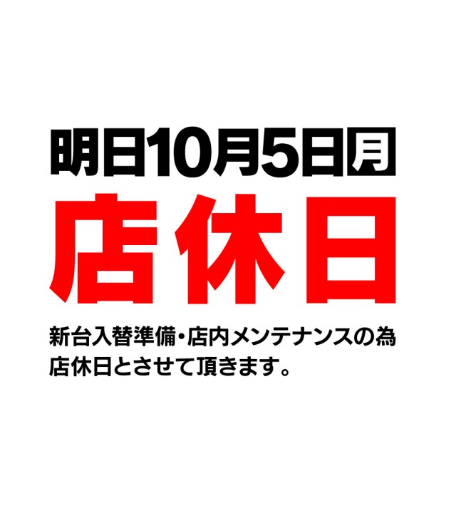 ◆明日10月5日(月)店舗メンテンスの為、店休日◆