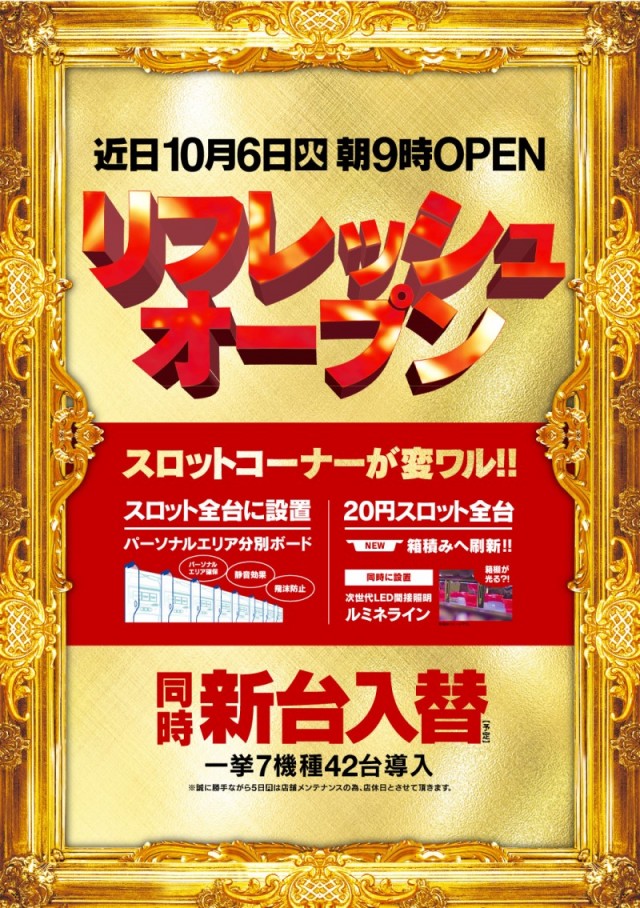 ◆本日10月6日(火)リフレッシュオープン、朝9時開店★