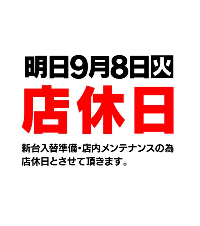 ◆明日9月8日(火)店舗メンテンスの為、店休日◆