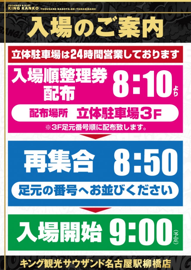 8:10より入場順番整理券配布予定! 開店10分前に再集合のご協力をお願いします。 |