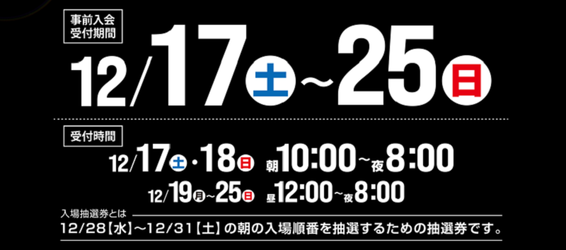 1位 12月13日(土) 2位 11月22日(土) 3位 11月29日(土)