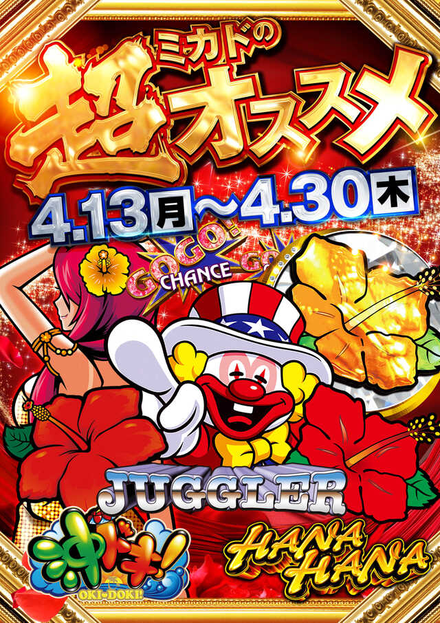 本日、朝9時開店!スロット打つなら今日はミカド師勝店で!