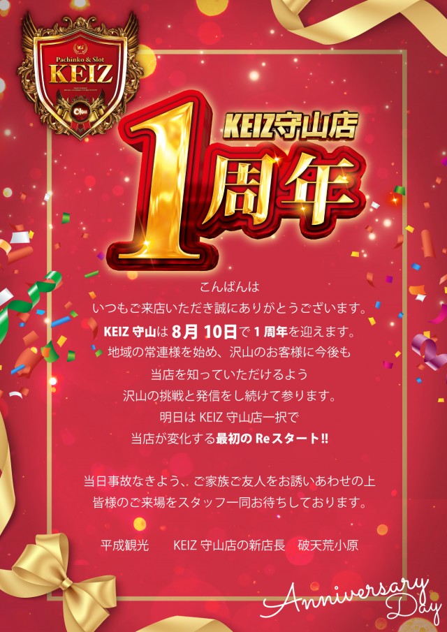 本日8月10日【生誕1周年】朝9時開店!ぜひご来店下さいませ