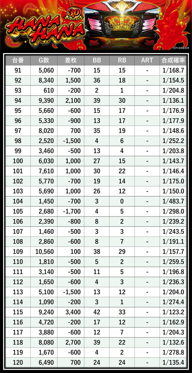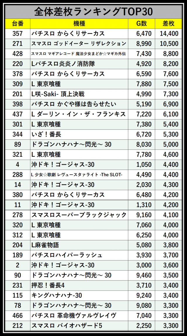 その結果の中から、ぱちタウンが注目すべきポイントを厳選してユーザーにお届け!プレイヤーが楽しんだ一日を下記データにて振り返ってみて欲しい。