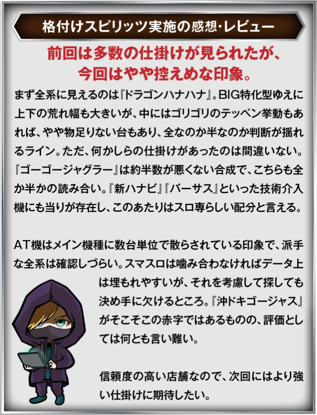 11月2日(日) SLOT ZENT 555にて、DMMぱちタウンの「格付けスピリッツ」を実施。