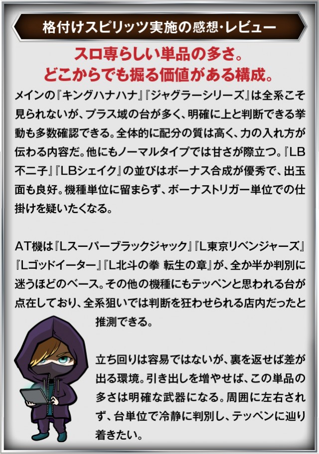 1月25日(日) SLOT ZENT 555にて、DMMぱちタウンの「格付けスピリッツ」を実施。