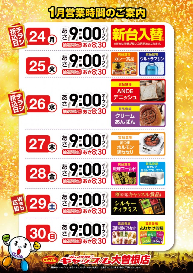 プレイランドキャッスル大曽根店のお知らせ一覧