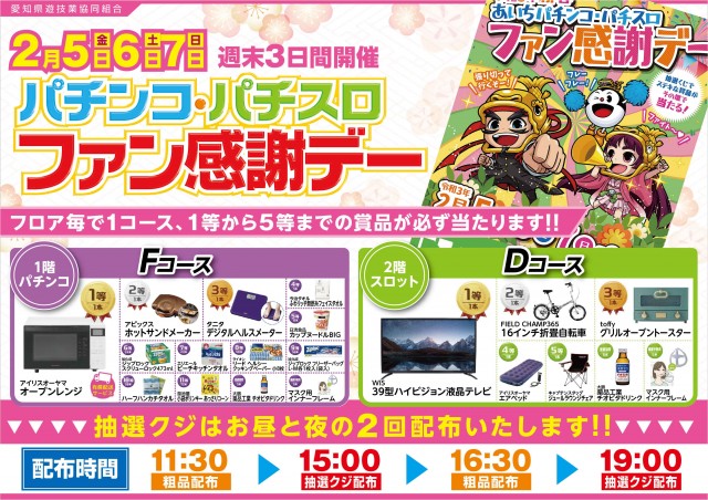 本日より3日間あいちパチンコ・パチスロファン感謝デー♪