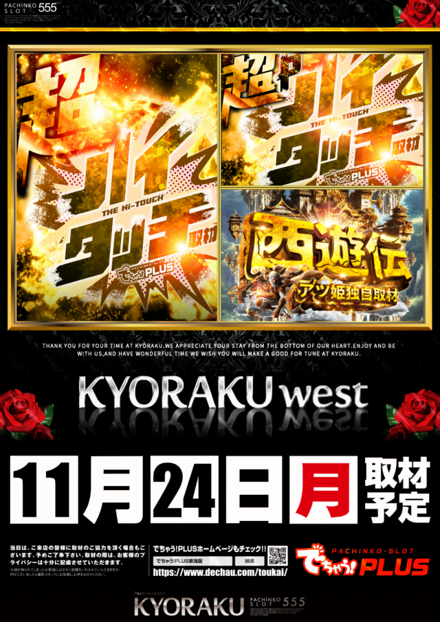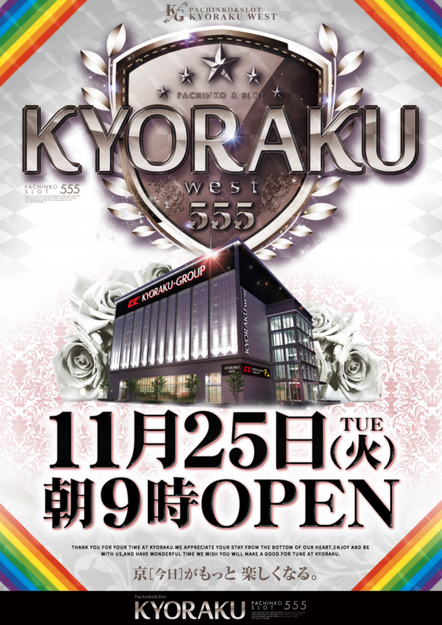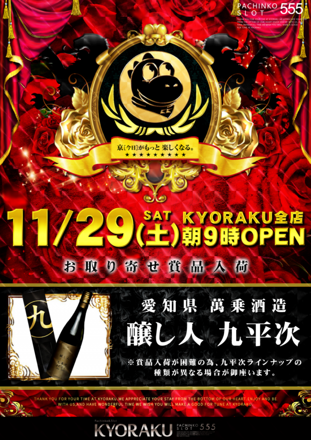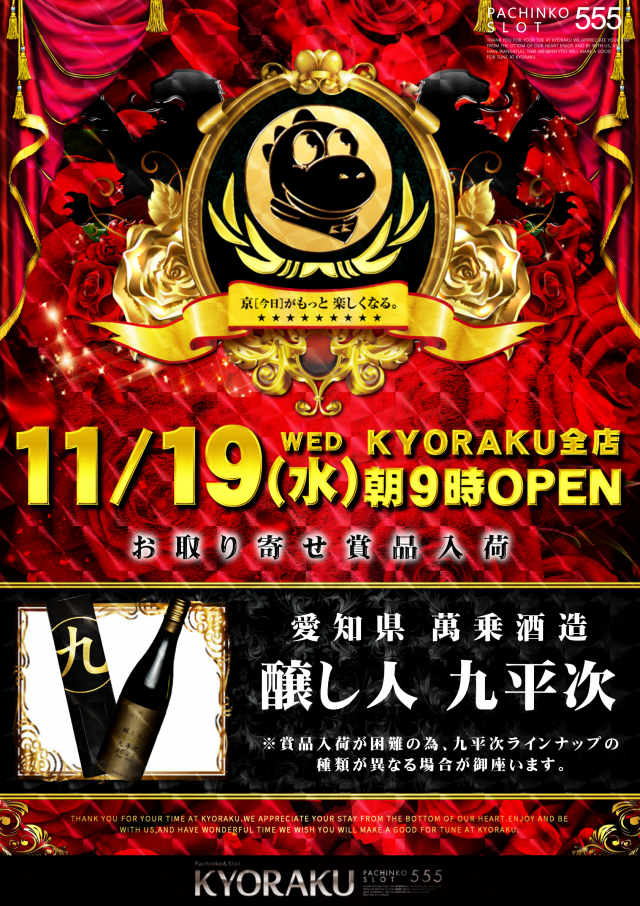 11月19日(水) KYORAKU全店 朝9時OPEN!