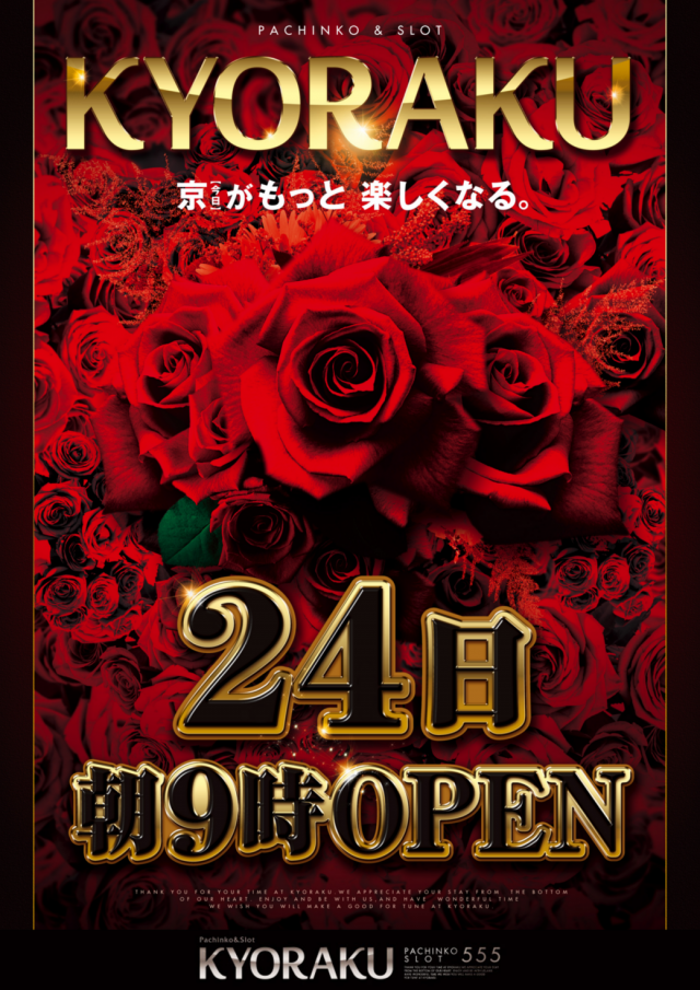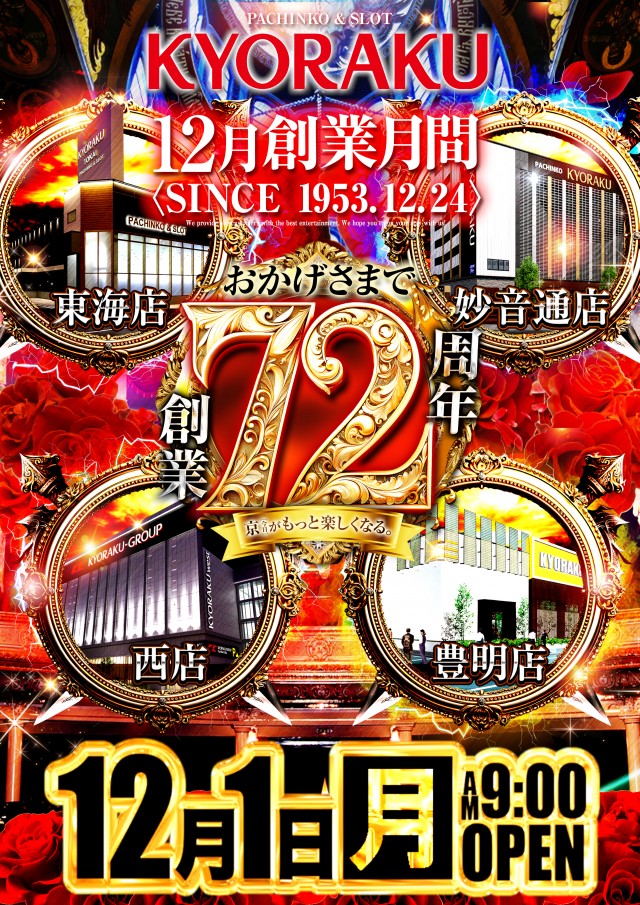 12月1日(月) KYORAKU全店 朝9時OPEN!