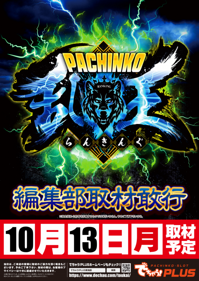10/13(月) 🎵スロパチ 匠 来店取材予定!朝9時開店🎵