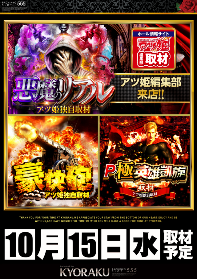 10/15(水)🌈悪魔のリアル&豪快砲&P極英雄取材予定🌈