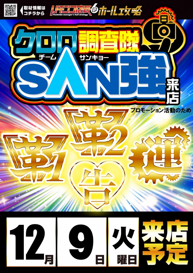 12/8(月) 🎵スロパチ来店取材予定!朝9時OPEN🎵
