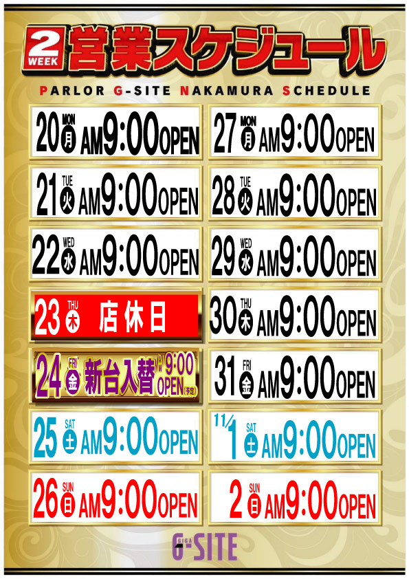 1位 10月9日(木) 2位 10月8日(水) 3位 10月10日(金)