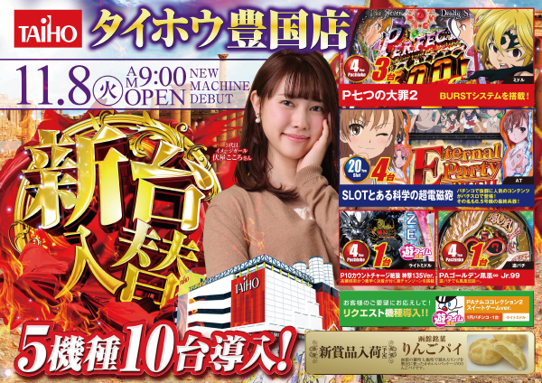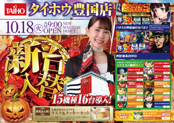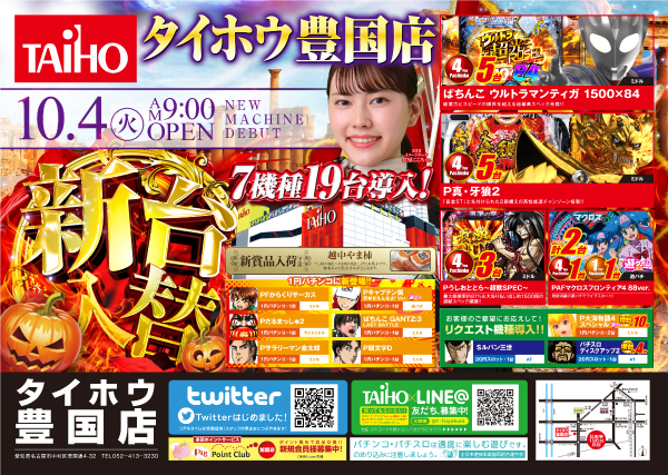 明日、タイホウ豊国店 新台入替!!15機種計16台導入!!