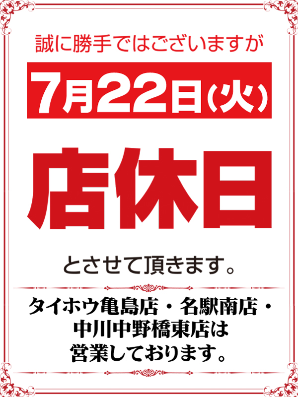 タイホウ豊国店のお知らせ一覧