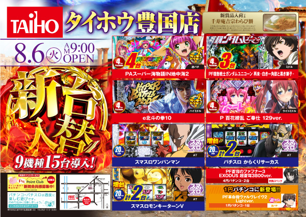 本日【新台入替】AM9:00OPEN!!