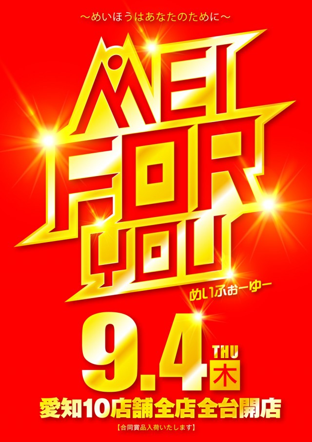 明日9月4日 MEI FOR YOU 合同賞品入荷 🌝