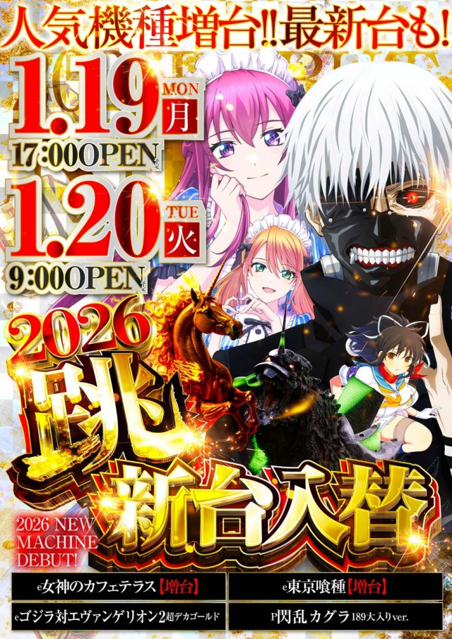 本日新台入替検査の為17時開店 明日1月20日新台入替初日🌈