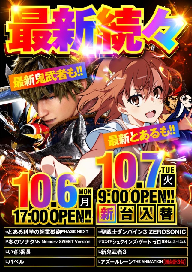 本日新台入替検査の為17時開店 明日10月7日新台入替初日🌈