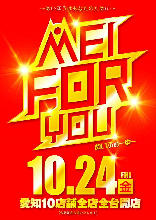明日10月24日 MEI FOR YOU 合同賞品入荷 🌝