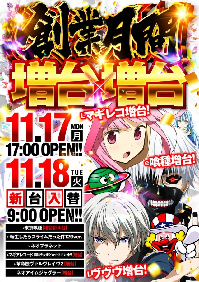 本日新台入替検査の為17時開店 明日11月18日新台入替初日