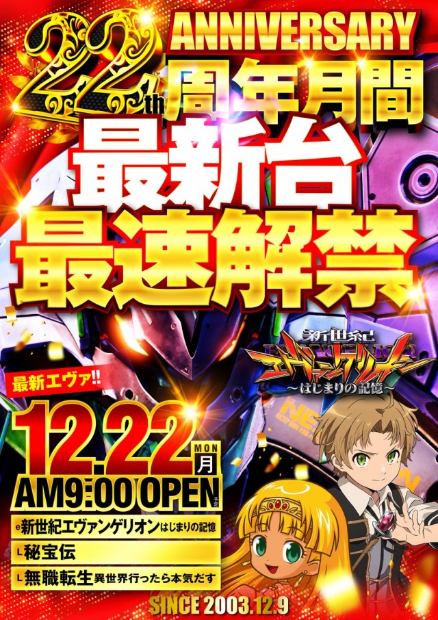 本日新台入替検査の為17時開店 明日12月9日新台入替初日🌈