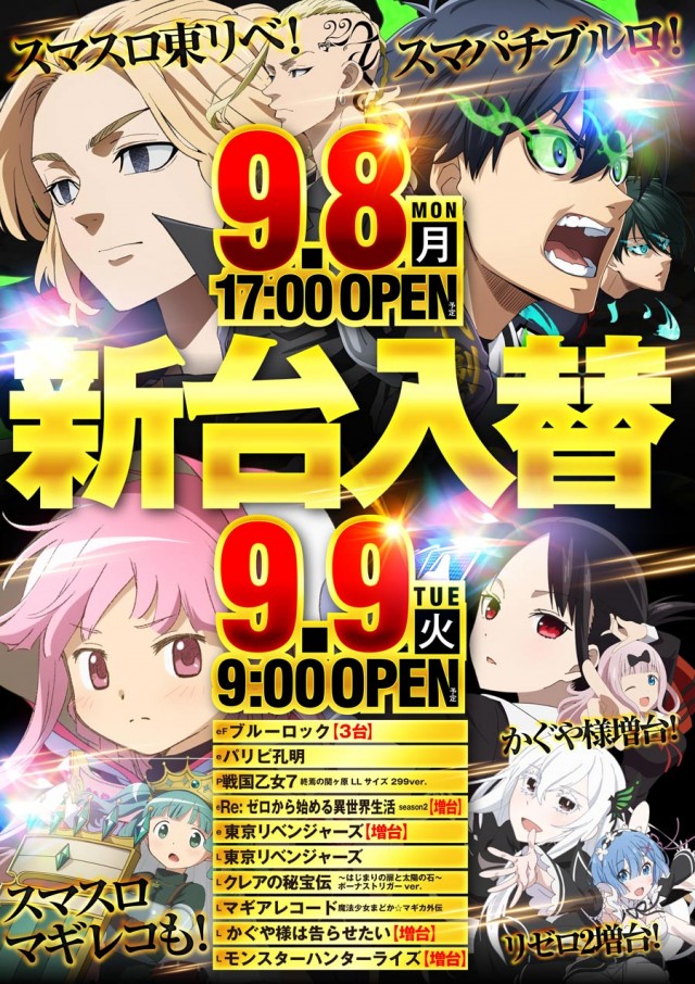 本日新台入替検査の為17時開店 明日9月9日新台入替初日🌈🌈