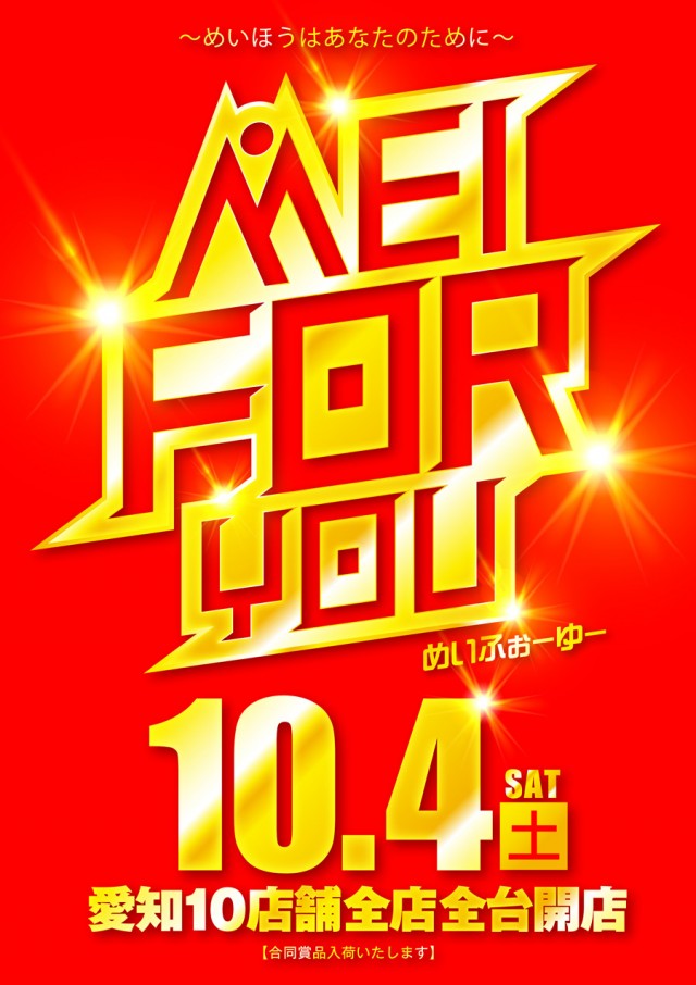 明日10月14日 愛知県10店舗合同賞品入荷 朝9時開店🌝
