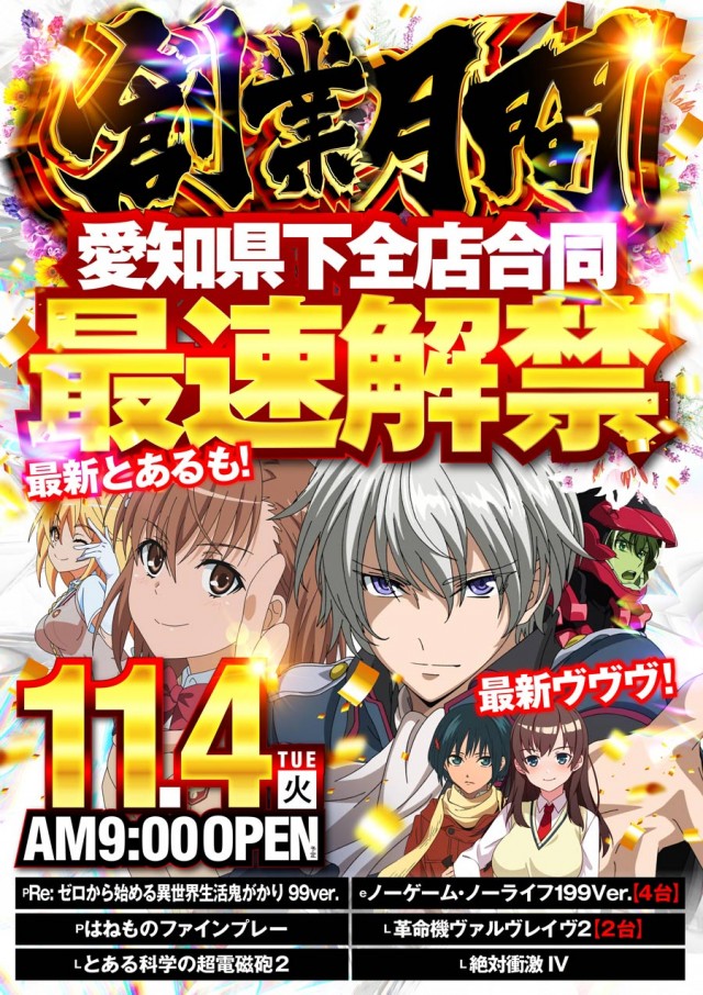 明日11月11日(土) 新台入替初日 朝9時開店