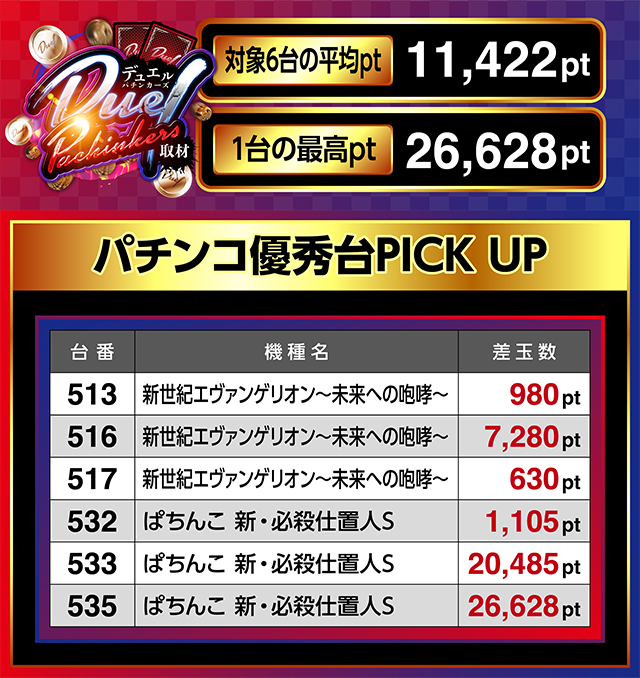 516番台の「新世紀エヴァンゲリオン~未来への咆哮~」は、7,200ptを上回った。